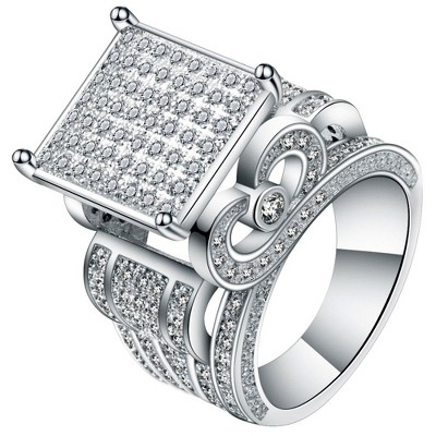 Slickblue Women’s 1.75CT Clear CZ Wedding Set, Rhodium-Finished Chevron Band, Classic Style, Sizes 5-10