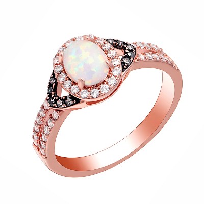 Chocolate Rose Gold Plated White Fire Opal Engagement Ring Women Ginger Lyne Collection (7)