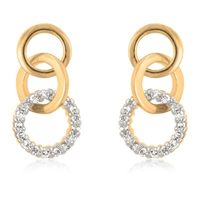 Slickblue Classic Goldtone Finish Triplet Hooplet Earrings, 0.34ct CZ, Perfect Wedding or Everyday Accessory