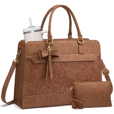 Laptop Tote Bag for Women, Leather Work Bag with Multiple Pockets, Waterproof Business and Teacher Bag