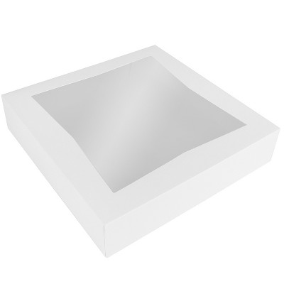 O'Creme White Cardboard Cake Box with Window, 12" x 12" x 2.7" - Pack of 5