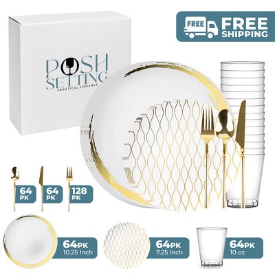 Posh Setting 448 Piece White And Gold Plastic Party Bundle - Whisk (64 Settings)