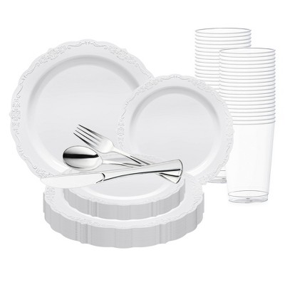 Smarty Had A Party White Vintage Round Plastic Wedding Set - 30 Sets