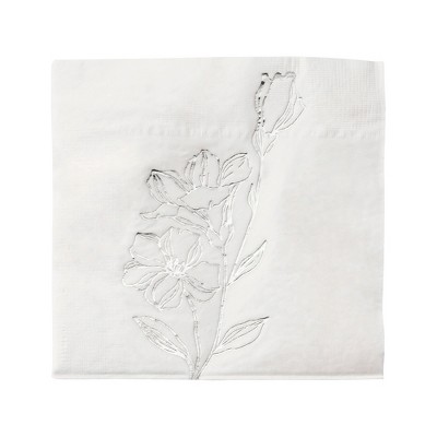 Smarty Had A Party White w/ Silver Antique Floral Paper Cocktail Napkins - 600 pcs