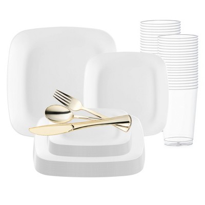 Smarty Had A Party White Square Plastic Dinnerware Set - 40 Sets