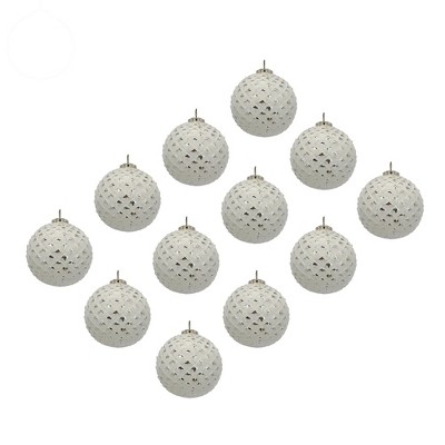 NAYSAYE Party Decoration and Accessories Set of 12 Glass Christmas Ball Hanging Ornament for Holiday Celebration, White, 3.3"*3.3"*3.3"