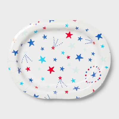 Oval Platter Disposable Plates 12"x9.25" Red White Blue Stars - 10ct - Sun Squad™