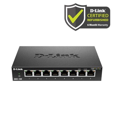 D-Link 8-Port Gigabit Unmanaged Switch, Plug and Play Fanless Metal Desktop (DGS-108/RE) Manufacturer Refurbished