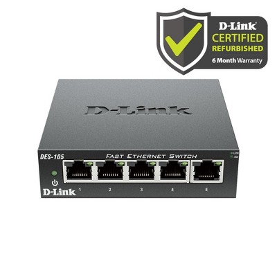 D-Link 5-Port Fast Ethernet Unmanaged Metal Compact Switch (DES-105/RE) Manufacturer Refurbished