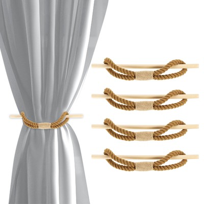 Unique Bargains Jute Hand-Woven Decorative Drape Curtain Tiebacks with Wood Club