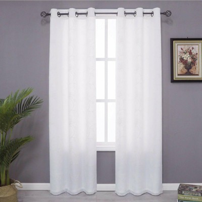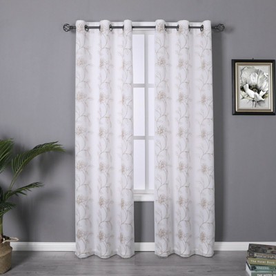 Kate Aurora Floral Embroidered Double Layered Sheer Grommet Curtains