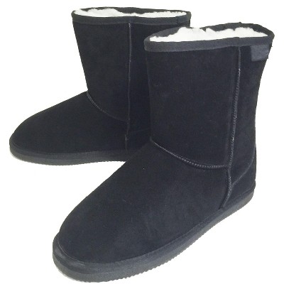 Women's Winter Boots Black Fashion Suede 10" Mid Calf Shearling Warm Fur Shoes