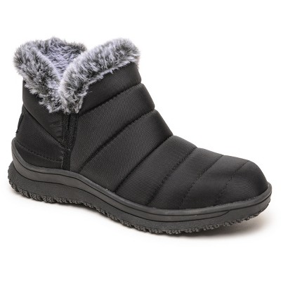 Women’s winter boots & snow boots help put together stylish winter outfits. Boots & booties make the perfect accessory to cold-weather outfits, be it for winter weddings, holiday parties or snowy-day soirees. From insulated, waterproof boots to pull-on boots to snow boots, there are so many ways to complete any outfit in a super-chic way. Check out Target.com to find an on-trend collection of women’s winter boots, from waterproof leather boots, lace boots & Chelsea boots to mid-calf, knee boots & over-the-knee ones that keep you cozy & comfortable. Pick up a pair of faux-fur boots or fleece-lined, water-resistant boots keep your feet feeling comfy & dry as you step out in the snow. Boots pair great with a dress, jeans or jeggings and can help you put together a cozy but elevated outfit. Make sure you pick one that’s just the right size & offers arch support if you enjoy winter hikes & walks. Going out with friends? Wear a pair of slip-on boots with jeans for a casual outfit that’s comfy enough for all-day plans. Going out for a date? Time to break out the knee-high boots with animal prints for a dramatic look. More of an outdoorsy person? Target has got you covered too with shearling-lined snow boots that are equal parts cute & cozy.