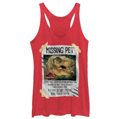 Women's Jurassic Park T. Rex Missing Pet Racerback Tank Top