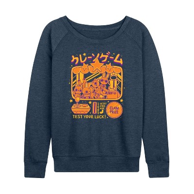 Women's - Instant Message - Arcade Claw Machine Lightweight French Terry Wide Neck Long Sleeve Graphic Shirt