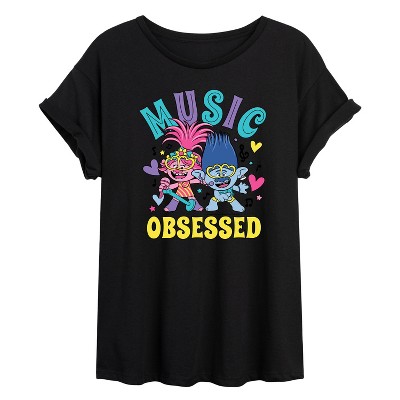 Women's - Trolls - Music Obsessed Poppy and Branch Oversized Graphic T-Shirt