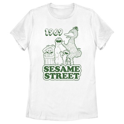 Women's Sesame Street Group Green Outline 1969 T-Shirt