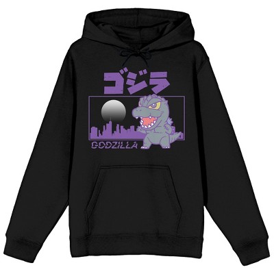 Godzilla Classic Chibi Tokyo Rampage Long Sleeve Black Adult Hooded Sweatshirt