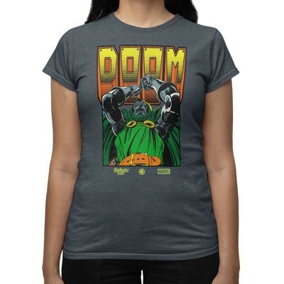 Marvel Comics Retro Doctor Doom Women's Short Sleeve T-Shirt (Dark Gray Heather, Size Medium)