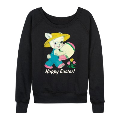 Women's - Instant Message - Vintage Happy Easter Lightweight French Terry Wide Neck Long Sleeve Graphic Shirt