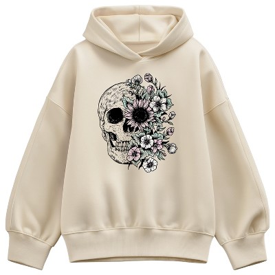 Women's - Instant Message - Half Skull Half Flowers Oversized Fleece Hoodie Sweatshirt