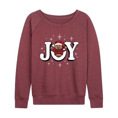Women's - Instant Message - Joy Teddy Bear Lightweight French Terry Wide Neck Long Sleeve Graphic Shirt