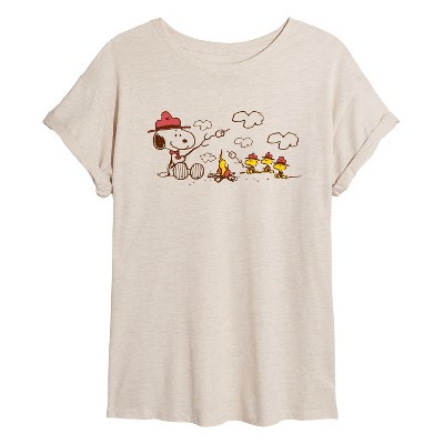 Women's - Peanuts - Beagle Scouts Fire Oversized Graphic T-Shirt
