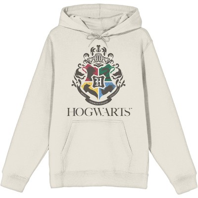 Harry Potter Minimal Hogwarts Crest Long Sleeve Natural Unisex Adult Hooded Sweatshirt