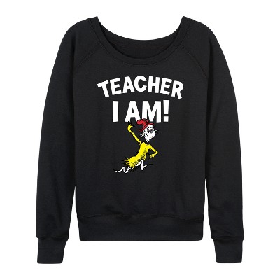Women's - Dr. Seuss - Teacher I Am Sam I Am Lightweight French Terry Wide Neck Long Sleeve Graphic Shirt