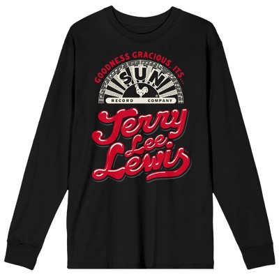 Sun Records Goodness Gracious It's Jerry Lee Lewis Crew Neck Long Sleeve Black Adult Tee
