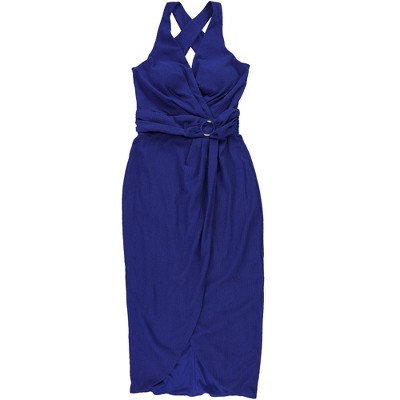 GUESS Womens Ruched O-Ring Cutout Wrap Dress
