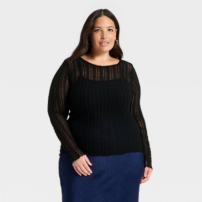 Women's Long Sleeve Round Neck Cable Sweater - A New Day™
