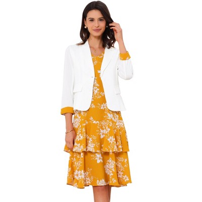 Allegra K Women's Chiffon V Neck Contrast Panel Work Jacket Dress Suit Set 2 Pcs