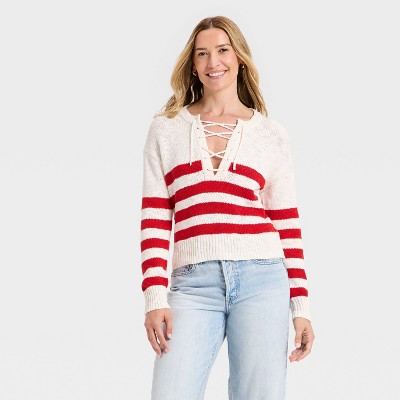 Women's Lace Up Crewneck Pullover Sweater - Universal Thread™