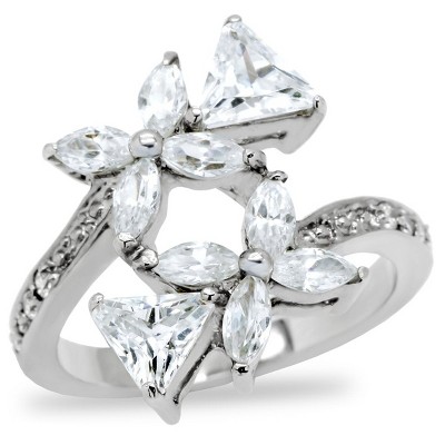 Slickblue Butterfly Design Ring, Stainless Steel Women's Jewelry, Two-Tone Finish, Clear Crystals, Sizes 5-10