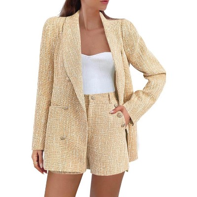 Imily Bela Women Tweed Blazer Shorts Set Double Breasted Business Suit