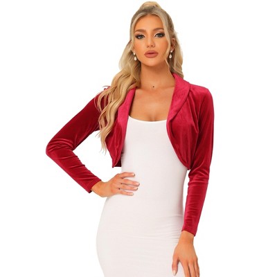INSPIRE CHIC Women's Long Sleeve Lapel Collar Velvet Open Front Cropped Cardigan