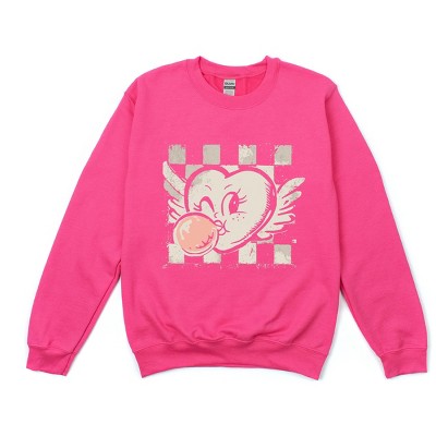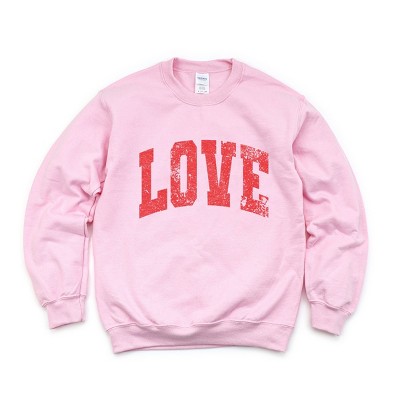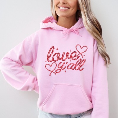 Women's Heart Oversized Graphic Hooded Pullover Sweatshirt - Light Pink