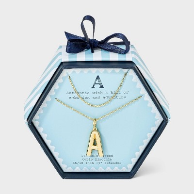 14K Gold Dipped Cubic Zirconia Duo Initial Multi-Strand Necklace - A New Day™ Gold