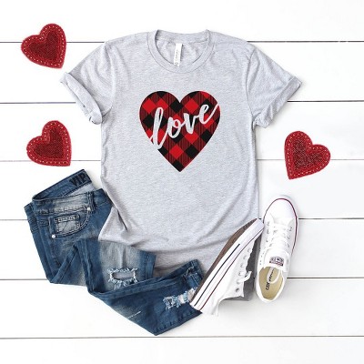 Simply Sage Market Women's Buffalo Plaid Love Heart Short Sleeve Graphic Tee