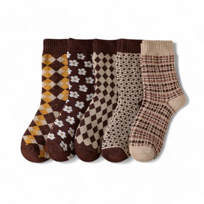 Alilang Women's 5-Pack Assorted Patterned Thick Knit Valentine Socks with Plaid and Holiday Prints