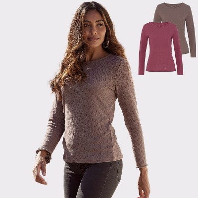 Women's 2 Pack Textured Long Sleeve Tops - LASCANA