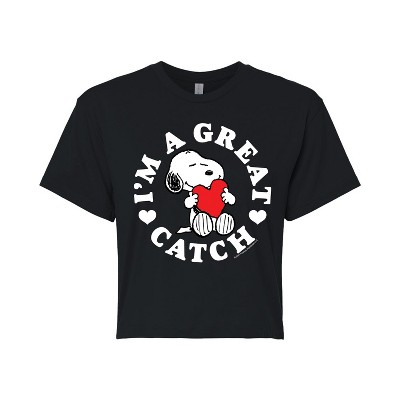 Women's - Peanuts - I'm a Great Catch Cropped Graphic T-Shirt