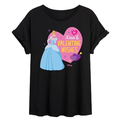 Women's - Disney Princess - Kisses and Valentine Wishes Darks Only Oversized Graphic T-Shirt
