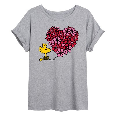 Women's - Peanuts - Flower Heart Oversized Graphic T-Shirt