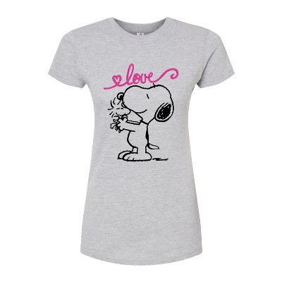 Women's - Peanuts - Love Snoopy and Woodstock Fitted Graphic T-Shirt