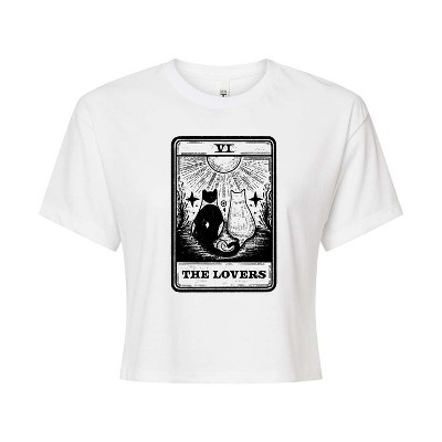 Women's - Instant Message - The Lovers Tarot With Cats Cropped Graphic T-Shirt