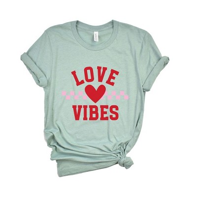 Simply Sage Market Women's Love Vibes Heart Checkered Short Sleeve Graphic Tee