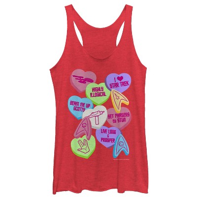 Women's Star Trek Valentine's Starfleet Candy Hearts Racerback Tank Top