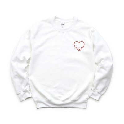 Simply Sage Market Women's Graphic Sweatshirt Embroidered Love Cursive Heart